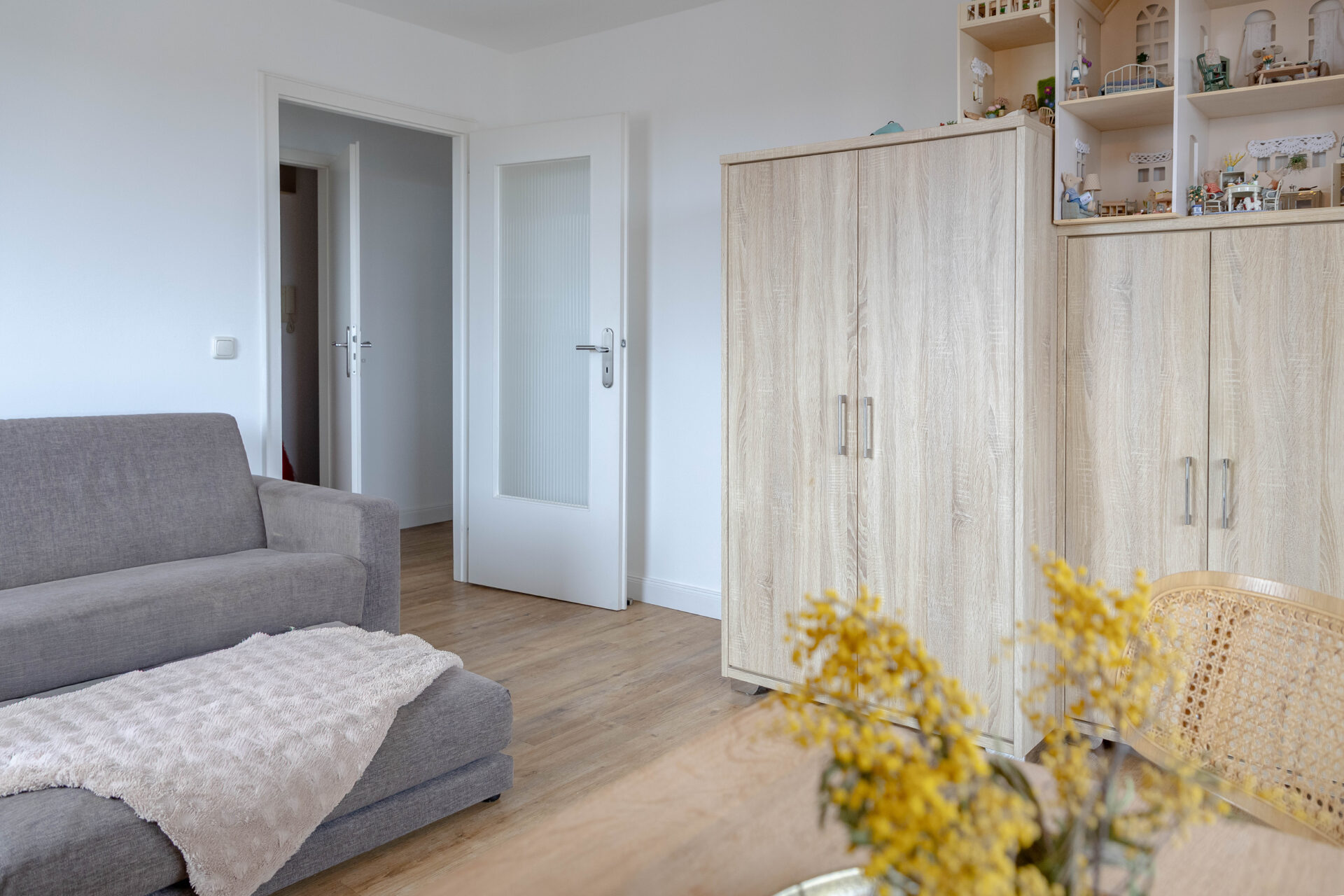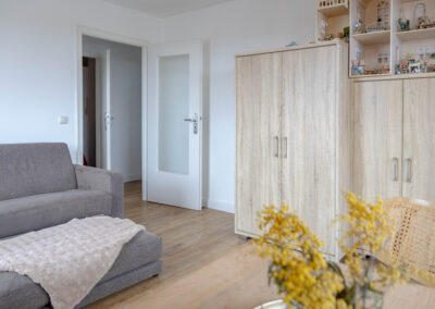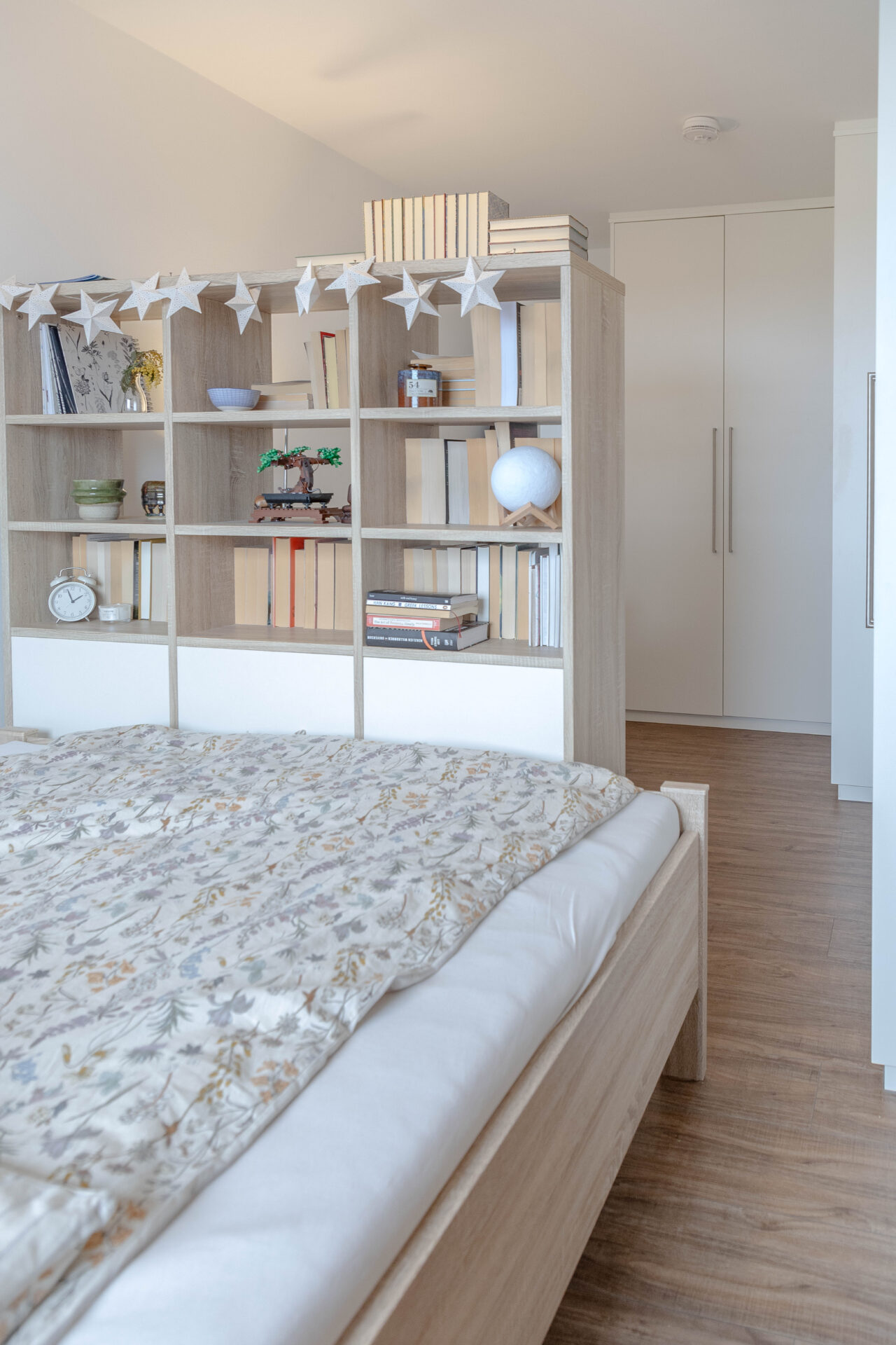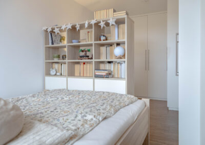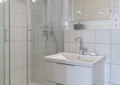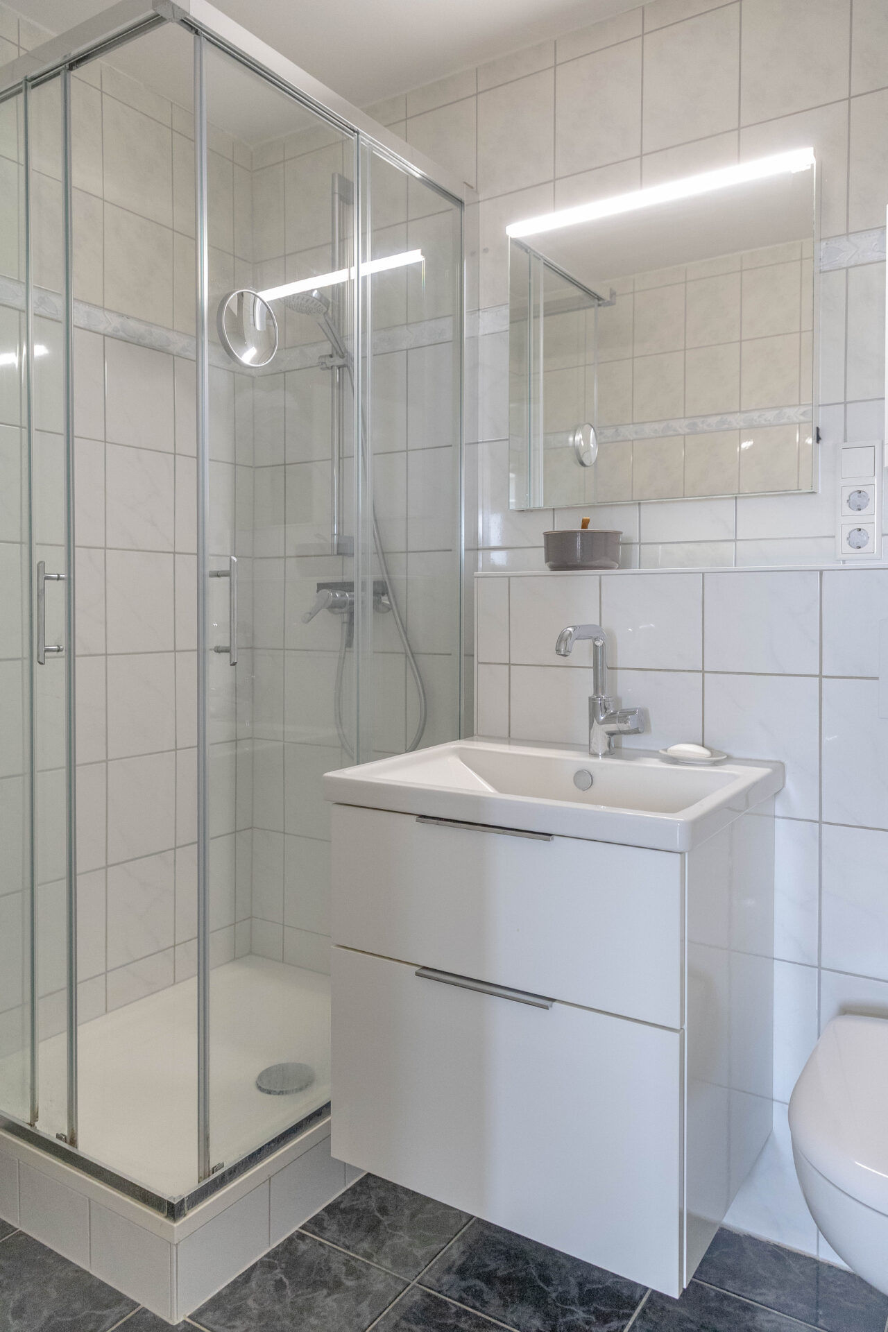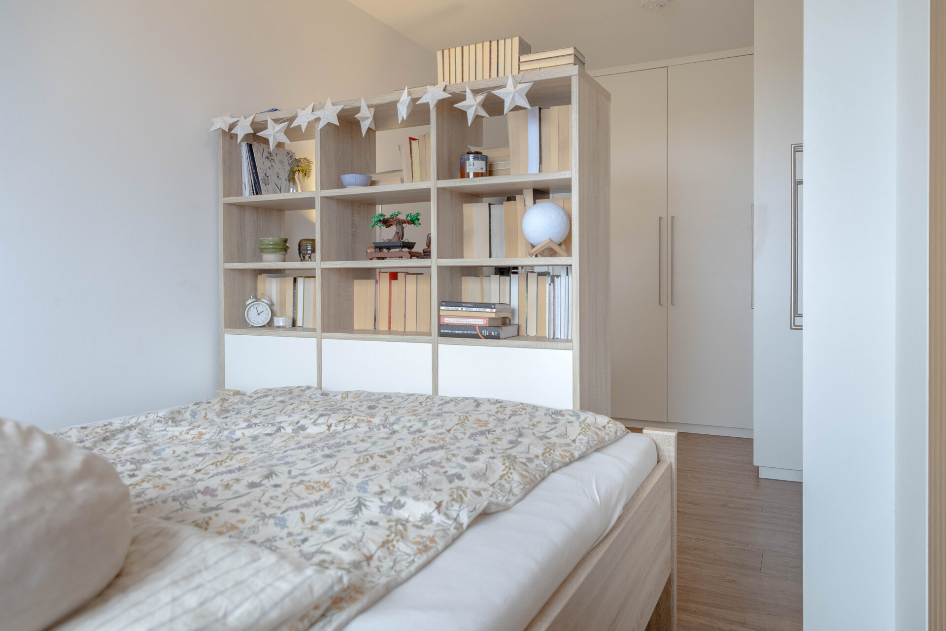 Das Schlafzimmer ist komfortabel mit Doppelbett und eigenem TV ausgestattet. Ergänzt wird das Raumangebot durch ein gepflegtes neues Duschbad sowie eine separate Abstellkammer mit zusätzlichem Stauraum.