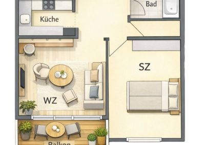 Auf ca. 42 m² präsentiert sich die Wohnung mit einem sehr gut gestalteten Grundriss.