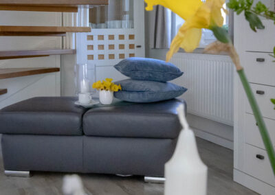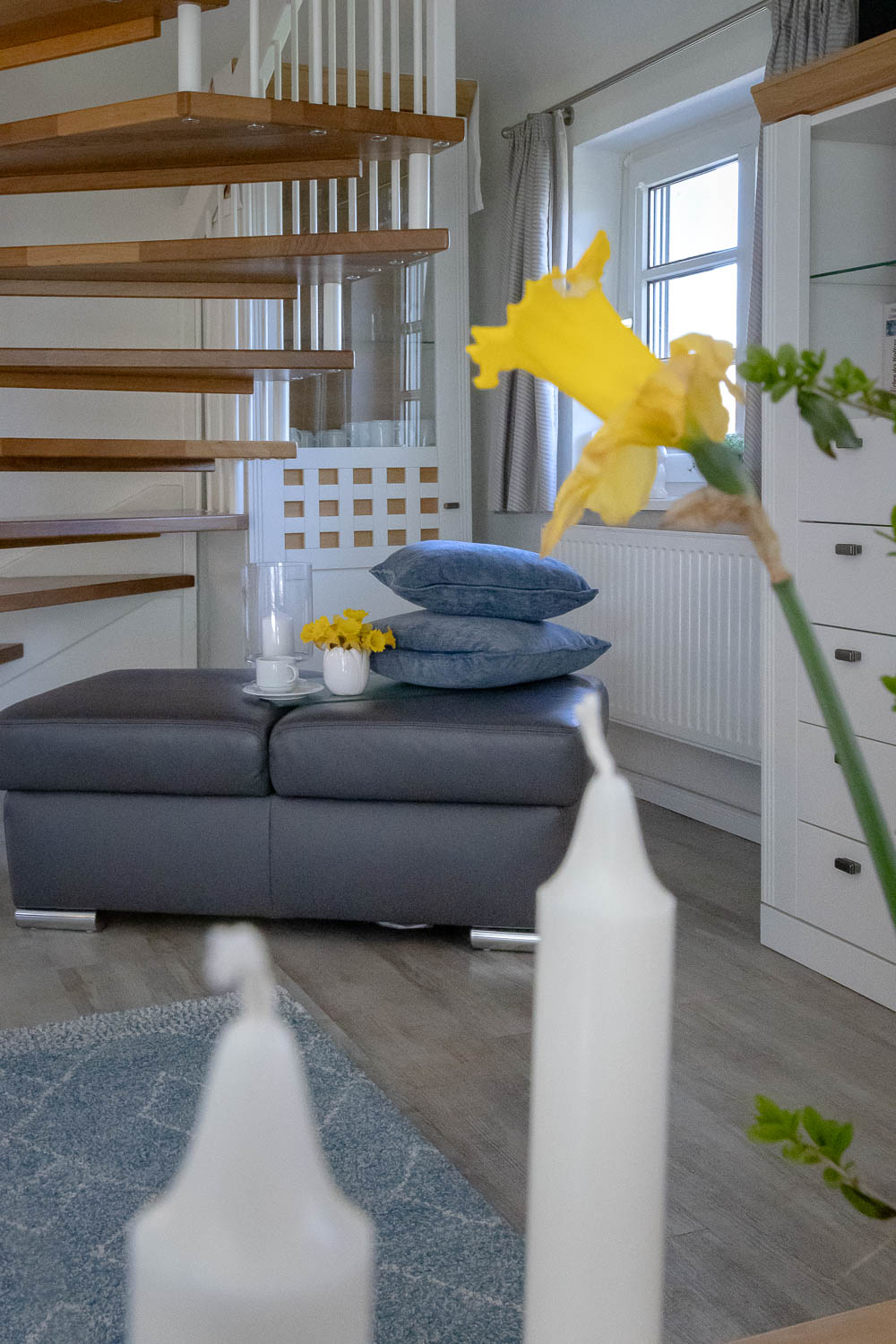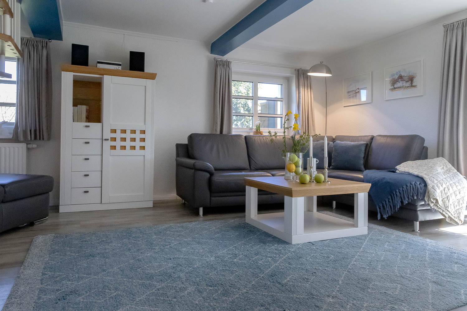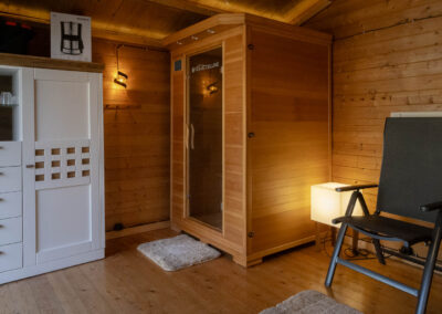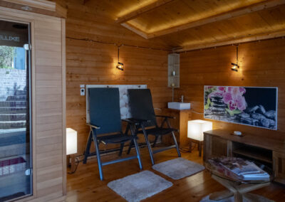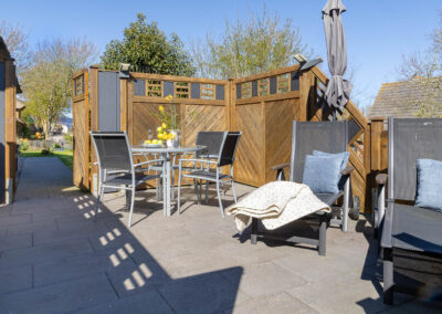 Separat auf dem Grundstück gelegen, ergänzt ein eigenes Blockhaus das Angebot mit Infrarotsauna und beheiztem Liegebereich für zwei Personen. Gerade an kühleren Nordseetagen ist dieser Rückzugsort kein Komfortdetail – sondern der Mittelpunkt des Abends.