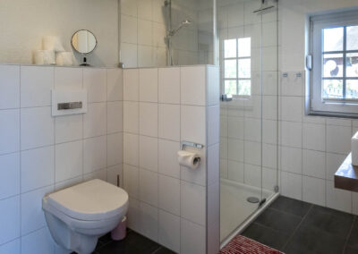 Wohnfläche ca. 83 m² · Grundfläche ca. 117 m² (überschlägig, ohne Gewähr) · Baujahr ca. 1900 · 2 Schlafzimmer · 4 Personen · Badewanne · Ebenerdige Dusche · Separate Toilette · Vollausgestattete Küche mit Geschirrspüler · Flachbild-TV mit Satellit · Waschmaschine · Bettwäsche & Handtücher inklusive · IR-Sauna im Wellnessblockhaus · Beheizte Liegeliege · Möblierte Südterrasse · Garten mit Obstbaumbestand · Grillmöglichkeit · PKW-Stellplatz · Fahrradunterstand mit Pedelec-Lademöglichkeit