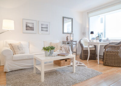 Ein besonderes Highlight ist der große Nordbalkon, auf dem Sie bereits das sanfte Rauschen des Meeres genießen können. Der moderne Boden in Holzoptik verleiht der Wohnung eine warme und wohnliche Atmosphäre.