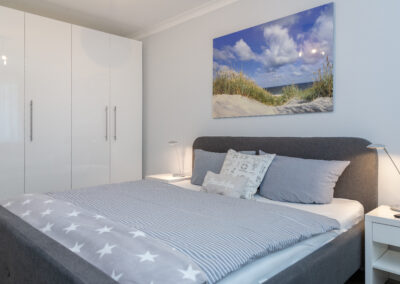 Die separate, großzügige Küche ist modern ausgestattet und bietet hohen Komfort für Eigennutzer ebenso wie für Feriengäste. Das geräumige Schlafzimmer mit Doppelbett rundet das hochwertige Wohnkonzept ab und unterstreicht den entspannten Charakter dieser Immobilie.