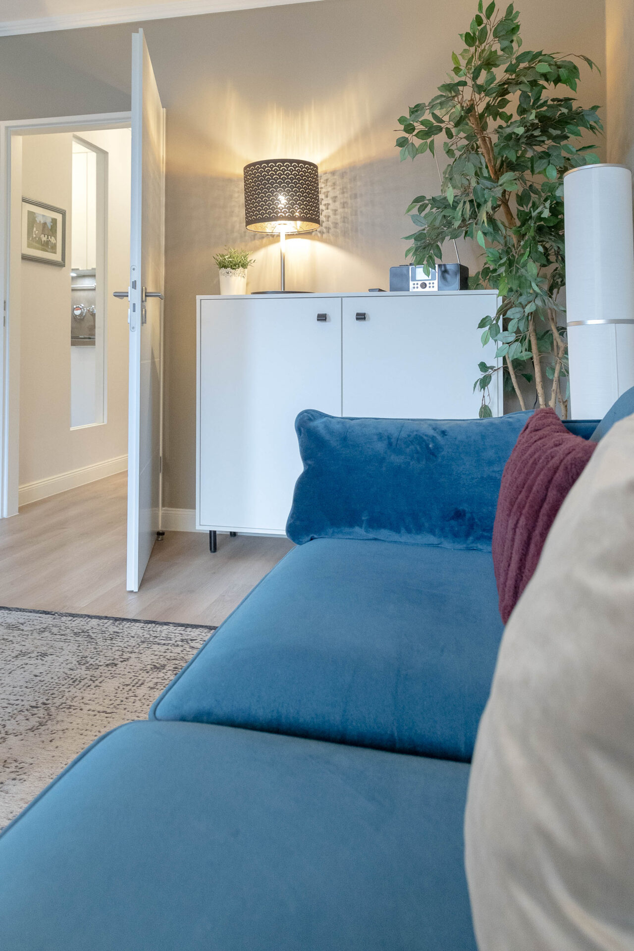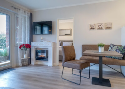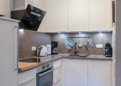 Die Wohnung wird voll ausgestattet und hochwertig möbliert verkauft – stilvoll und bezugsfertig. Der Wohnbereich ist mit einer eleganten Designercouch und einem elektrischen Kamin ausgestattet, der für ein behagliches Ambiente sorgt. Im Schlafzimmer erwartet Sie ein komfortables Boxspringbett für erholsame Nächte. Zwei Smart-TVs sorgen für Unterhaltung auf höchstem Niveau – im Wohn- wie auch im Schlafzimmer.
