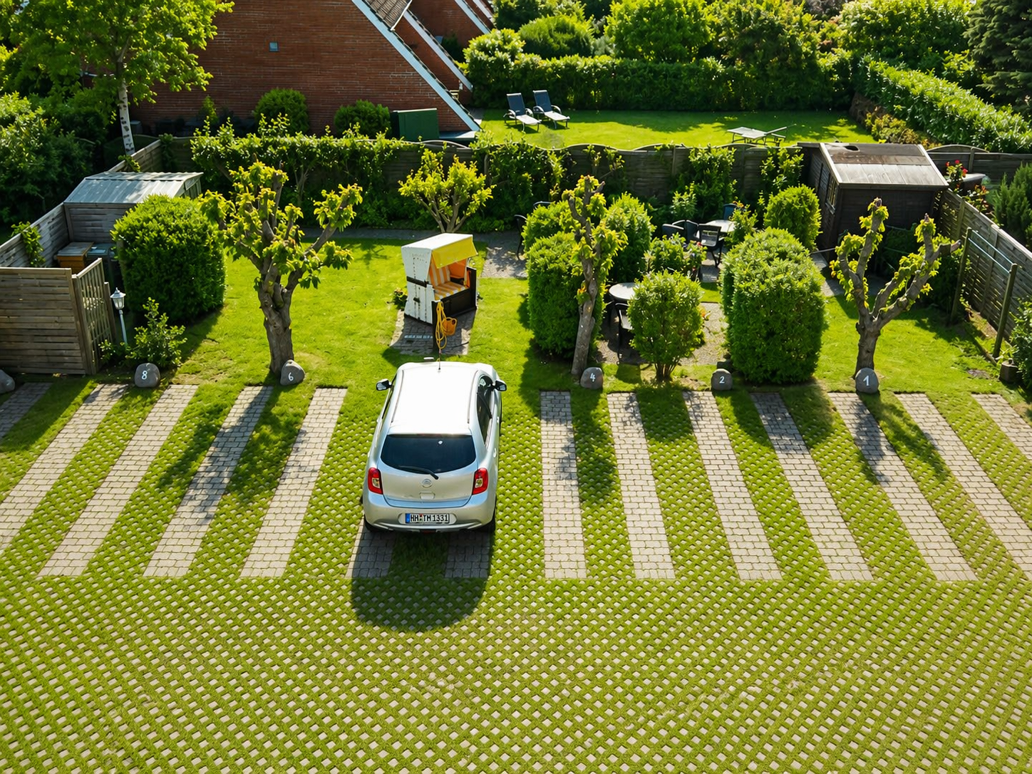 PKW Stellflächen und Gartenbereich: