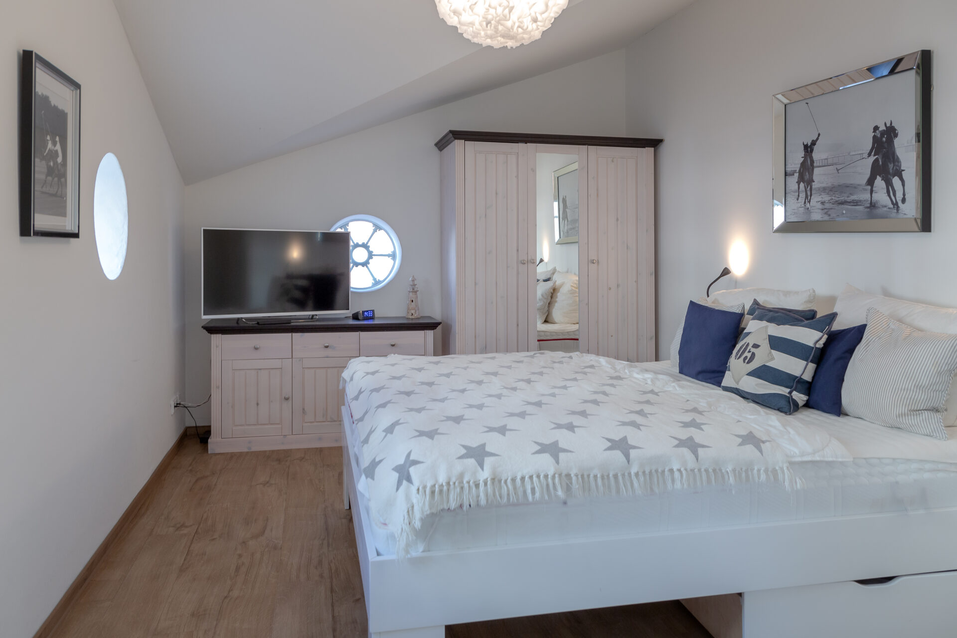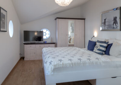 2 Schlafzimmer mit jeweils einem großen Doppelbett und Kleiderschrank